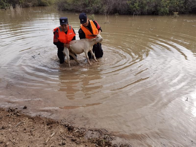 “請民警同志幫幫忙,我的羊群被困在河里了,這可是我的命根子??!”2020年9月8日8時(shí)許,蘇泊淖爾邊境派出所一個(gè)報(bào)警電話打破了清晨的寧靜,來電的是內(nèi)蒙古額濟(jì)納旗蘇泊淖爾蘇木牧民布某。原來,夜里黑河漲水,他家的幾十只羊被困,望著身陷險(xiǎn)境的羊群,焦急的布某打通了派出所的報(bào)警電話。