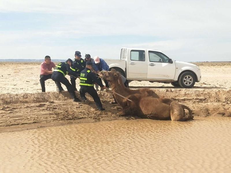 無獨(dú)有偶。當(dāng)日下午,阿拉善左旗蘇宏圖邊境派出所也接到群眾報(bào)警:稱其一峰駱駝陷入泥潭無法脫身,請求救助。民警趕到現(xiàn)場后發(fā)現(xiàn)這是一峰懷孕母駝,在飲水時(shí)不慎滑入泥潭,由于浸泡許久,已經(jīng)無法站立。民警當(dāng)即采取措施,在避免肚子受傷害的前提下,將兩條繩子分別固定在駱駝前肢與后肢,再利用人力拖拽,經(jīng)過2個(gè)小時(shí)的救援,成功將母駝救出。(牛鑫 梁鎮(zhèn) 于鶴偉)