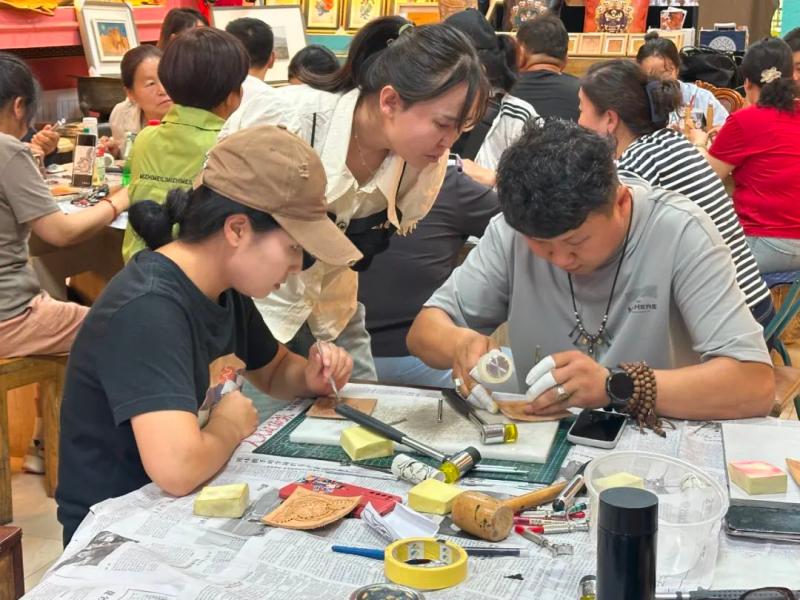 連日來,皮雕技藝培訓(xùn)班也在如火如荼開展。自治區(qū)級非遺項目皮雕技藝傳承人溫都爾木現(xiàn)場指導(dǎo)學(xué)員制作傳統(tǒng)皮雕,并將皮雕技藝創(chuàng)新應(yīng)用于錢包、腰帶等日常用品?!按舜闻嘤?xùn)吸引了30多名農(nóng)牧民參與,我們不僅傳授傳統(tǒng)皮雕工藝,還教授阿拉善寶石鑲嵌技法,助力農(nóng)牧民掌握增收新技能,實現(xiàn)技藝傳承與增收致富雙贏?!睖囟紶柲靖嬖V記者?! ?/p>