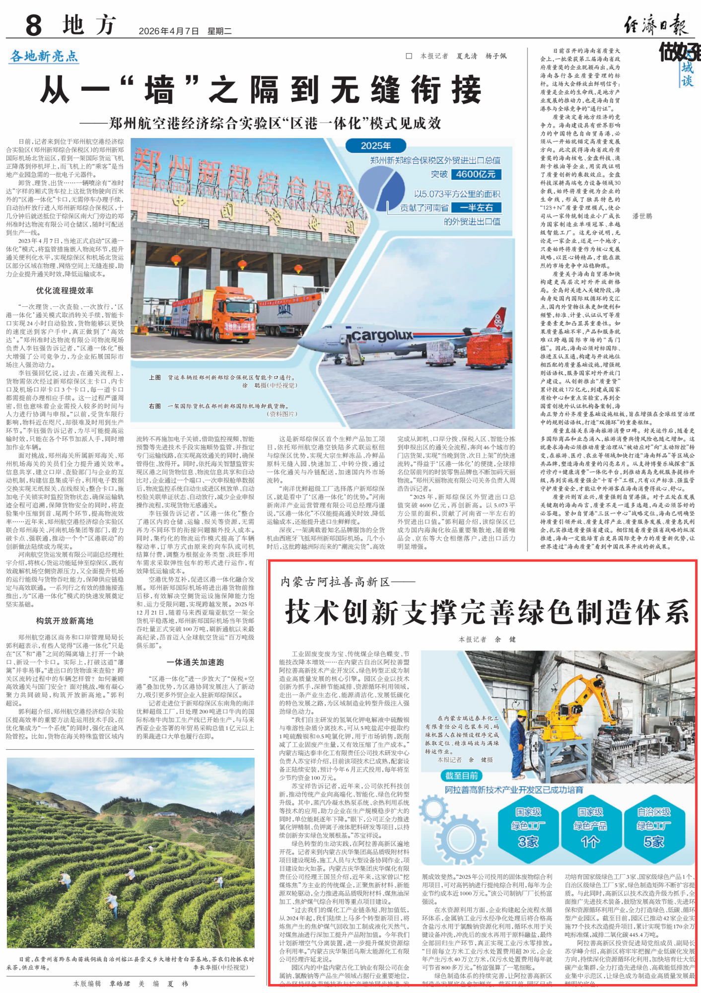 2026年4月7日,《經(jīng)濟日報》第8版刊發(fā)題為《內(nèi)蒙古阿拉善高新區(qū)——技術(shù)創(chuàng)新支撐完善綠色制造體系》的文章,報道了在內(nèi)蒙古自治區(qū)阿拉善盟阿拉善高新技術(shù)產(chǎn)業(yè)開發(fā)區(qū),綠色轉(zhuǎn)型正成為制造業(yè)高質(zhì)量發(fā)展的核心引擎。園區(qū)企業(yè)以技術(shù)創(chuàng)新為抓手,深耕節(jié)能減排、資源循環(huán)利用領(lǐng)域,走出一條產(chǎn)業(yè)生態(tài)化、能源清潔化、發(fā)展低碳化的特色發(fā)展之路,為區(qū)域制造業(yè)轉(zhuǎn)型升級注入強勁綠色動力。
