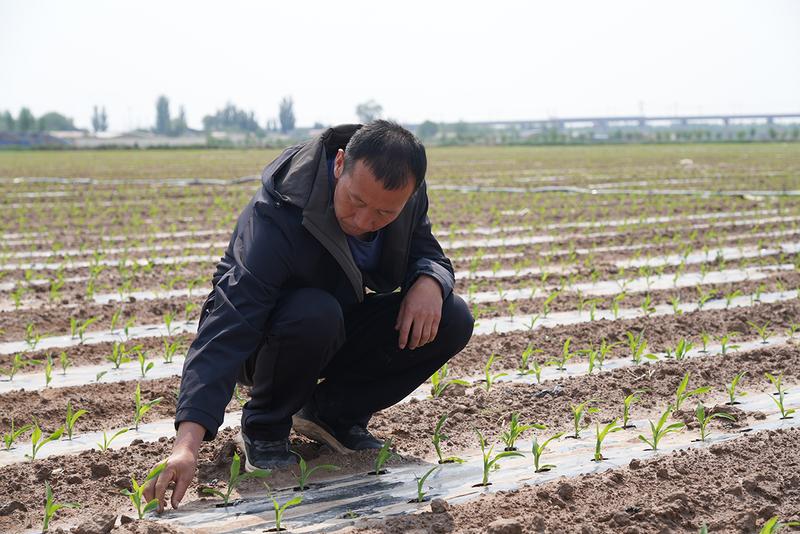 種糧大戶楊志泉察看玉米長勢(shì)