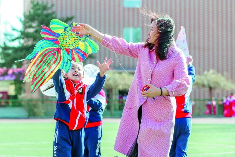 3月29日,呼和浩特市南門外小學的學生在老師指導下放飛自己制作的風箏。隨著天氣轉暖,該校開展了形式多樣的社會實踐課,培養(yǎng)學生動手、動腦能力,豐富學生的課余活動。
