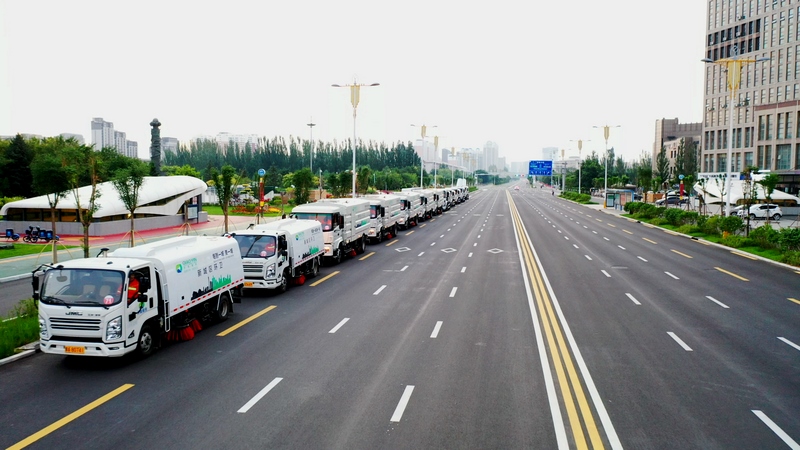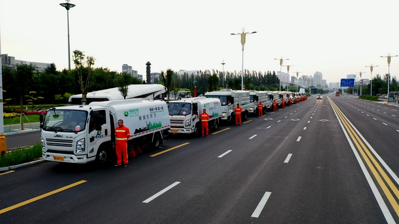 隨后,被譽(yù)為“大馬蜂”和“小蜜蜂”的18噸洗掃車和8噸洗掃車分工合作,將寬闊的成吉思汗大街機(jī)動車道和非機(jī)動車道清掃得干干凈凈。