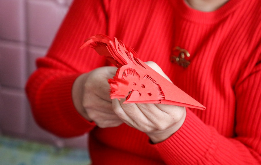 北疆新聞呼和浩特1月22日消息(記者 楊凈毓)春節(jié)將至,日前,在內(nèi)蒙古呼和浩特市土默特左旗畢克齊鎮(zhèn),土默特剪紙非遺傳承人李還秀和姐妹們在炕頭上剪窗花,非遺傳承人孟素英手工捏制“龍”樣面塑,準備迎接“龍”年的到來。