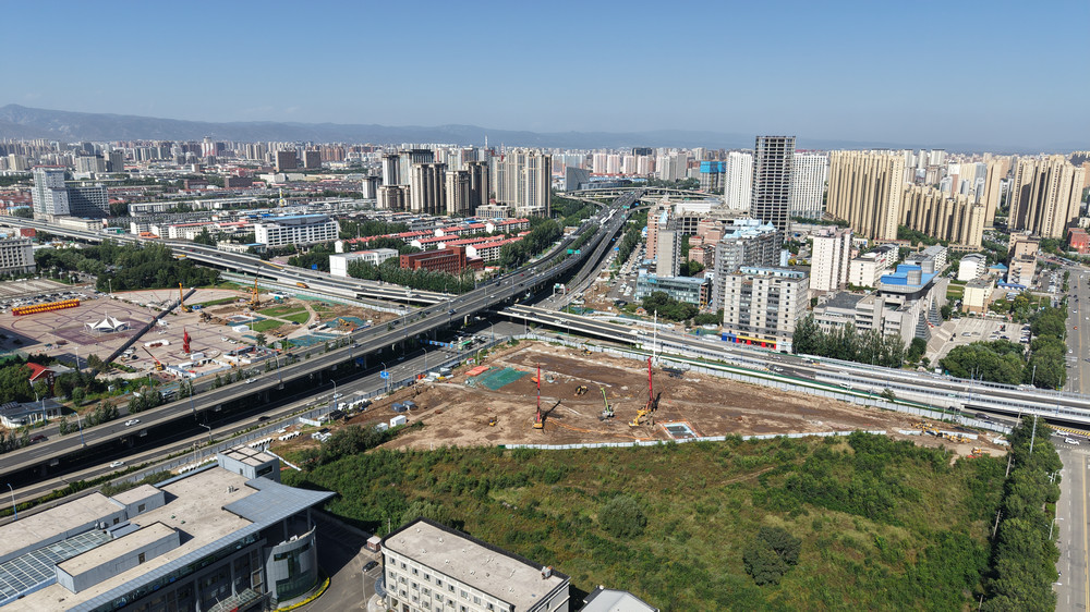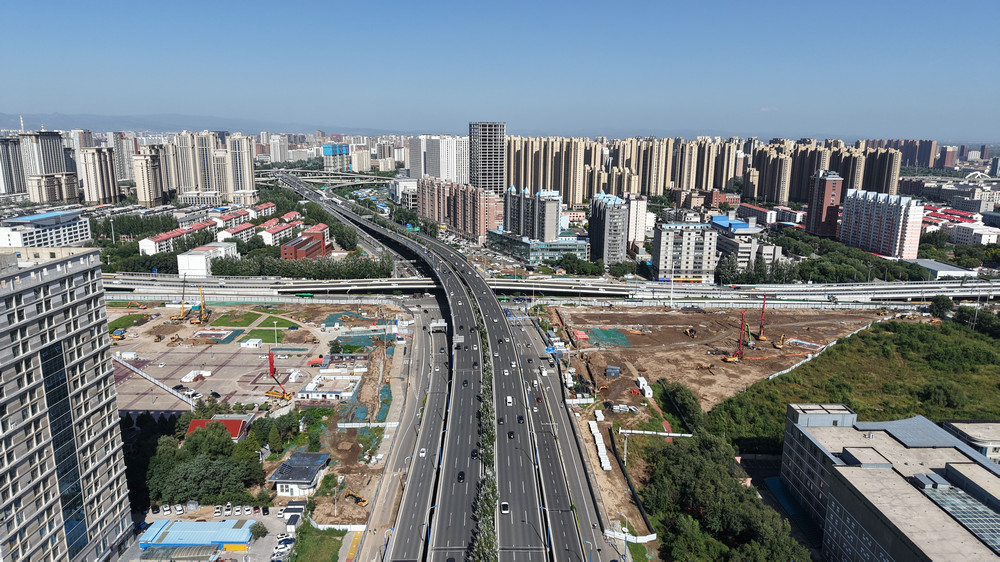 9月6日,呼和浩特昭烏達(dá)路與南二環(huán)互通立交工程正在施工。