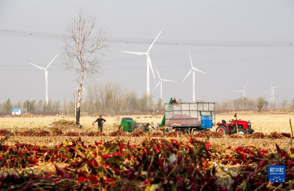 10月25日,在開(kāi)魯縣東風(fēng)鎮(zhèn)東方紅村,村民收獲紅干椒。新華社記者 連振 攝