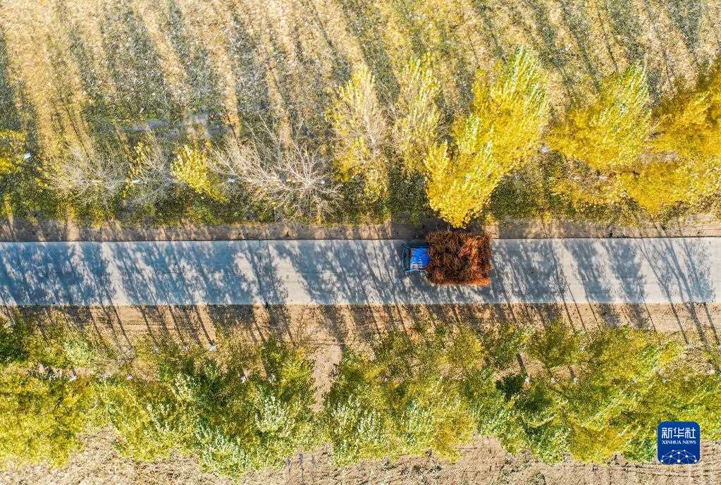 10月25日,在開(kāi)魯縣東風(fēng)鎮(zhèn)東方紅村,村民運(yùn)輸收獲的紅干椒(無(wú)人機(jī)照片)。新華社記者 連振 攝