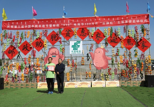 據(jù)介紹,“919電商節(jié)”,是中國(guó)郵政集團(tuán)公司利用線上電商平臺(tái),開(kāi)展農(nóng)產(chǎn)品進(jìn)城、助力農(nóng)民脫貧致富的惠民活動(dòng)。今年活動(dòng)期間,擬銷售“后旗紅”土豆100萬(wàn)斤,可以讓一家扶貧龍頭企業(yè)、一家合作社、500多戶農(nóng)牧戶受益。其中北方馬鈴薯批發(fā)市場(chǎng)帶動(dòng)200戶貧困戶參與集體分紅,戶均增收1000元;高價(jià)收購(gòu)15戶貧困戶、20戶農(nóng)戶馬鈴薯20萬(wàn)斤,戶均增收1600元;直接間接帶動(dòng)務(wù)工人員265人,人均增收420元;活動(dòng)期間將為28戶農(nóng)戶提供免費(fèi)耕作服務(wù),免費(fèi)耕作土地總畝數(shù)940畝,幫助28戶農(nóng)戶節(jié)省開(kāi)支42300元,戶均節(jié)省1511元。