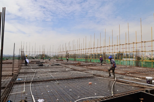 “目前,項目正在進(jìn)行基礎(chǔ)設(shè)施施工,辦公樓已完成1層封頂,1號車間正在進(jìn)行主體結(jié)構(gòu)的鋼管架的搭設(shè)和模板制作,外網(wǎng)工程和2號、3號車間基礎(chǔ)施工也在順利推進(jìn)?!表椖渴┕挝回?fù)責(zé)人王秀山告訴記者,該項目計劃今年8月底完成辦公樓、綜合服務(wù)樓主體施工,9月中旬完成3個車間主體施工。