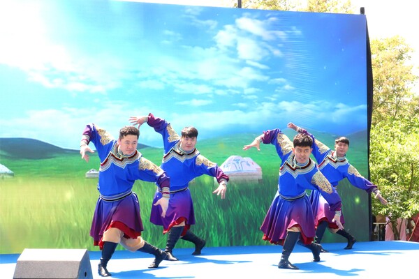 緊接著,興安盟烏蘭牧騎隊(duì)員手中的馬頭琴悠然奏響,旋律如潺潺溪流,流淌在每一個(gè)人的心田。身著盛裝的《草原歡歌》舞者在舞臺(tái)上盡情翻飛旋轉(zhuǎn),她們的舞姿輕盈靈動(dòng),仿佛將首都市民帶入了廣袤無垠的科爾沁草原,讓人們在京城之中也能感受到草原的遼闊與奔放?! ?/p>