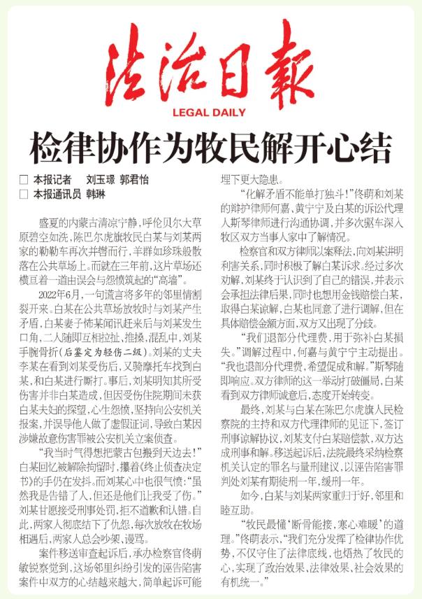 “牧民最懂‘斷骨能接,寒心難暖’的道理?!辟∶缺硎?,“我們充分發(fā)揮了檢律協(xié)作優(yōu)勢,不僅守住了法律底線,也焐熱了牧民的心,實現(xiàn)了政治效果、法律效果、社會效果的有機統(tǒng)一?!保?span style="text-align: justify;">作者 劉玉璟 郭君怡 韓琳)