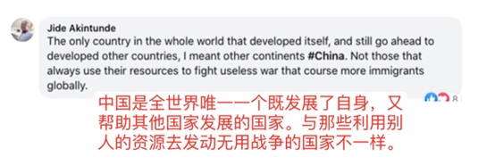網(wǎng)友盧克蒙·奧拉德潑·法布恩米說:“撒謊者已經(jīng)被指出來了,他們批評中國制造的一切,但被人發(fā)現(xiàn)他們的指責毫無根據(jù)。中國干得漂亮。”