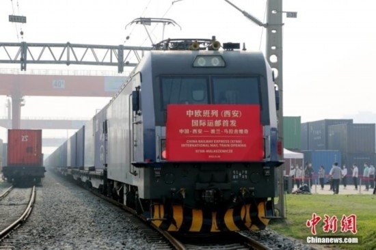 資料圖:2022年9月16日,中歐班列(西安)國際運郵專線首次開行,列車裝載著國際郵件、包裹、商業(yè)快件從西安國際港站駛出,經阿拉山口口岸出境,將于約12天后抵達波蘭馬拉舍維奇,郵件再交由波蘭郵政轉運到歐洲各國。 中新社記者 張遠 攝