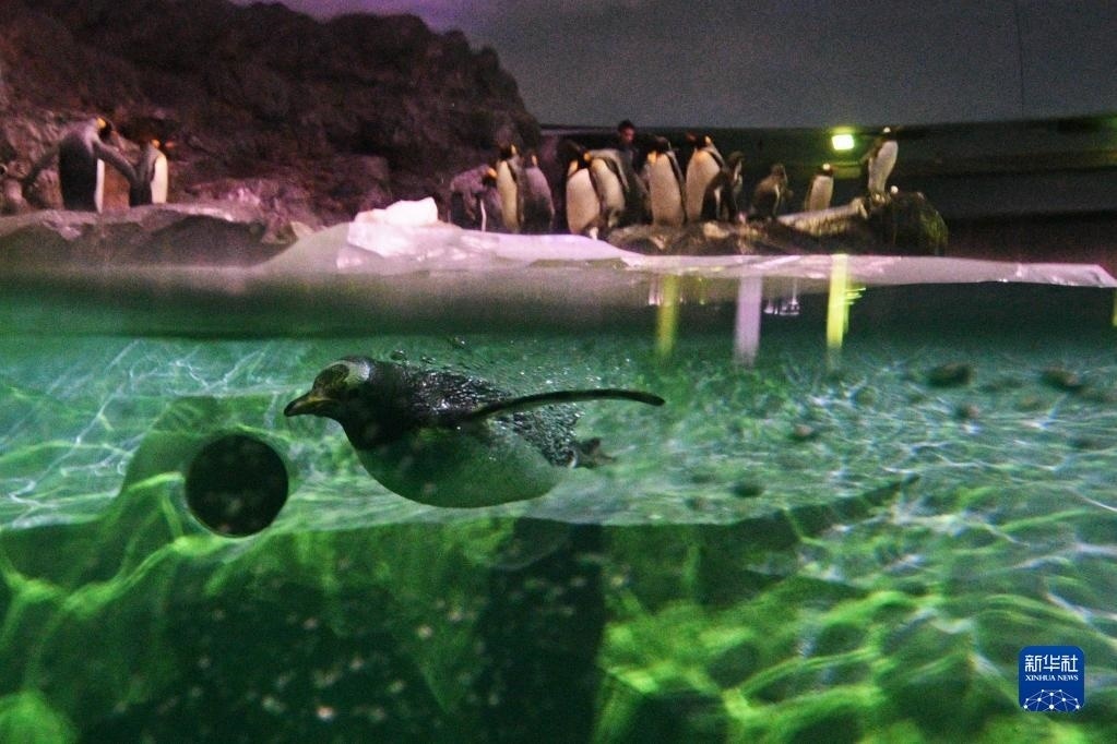 這是5月8日新加坡飛禽公園開放當(dāng)天拍攝的潛水的企鵝。