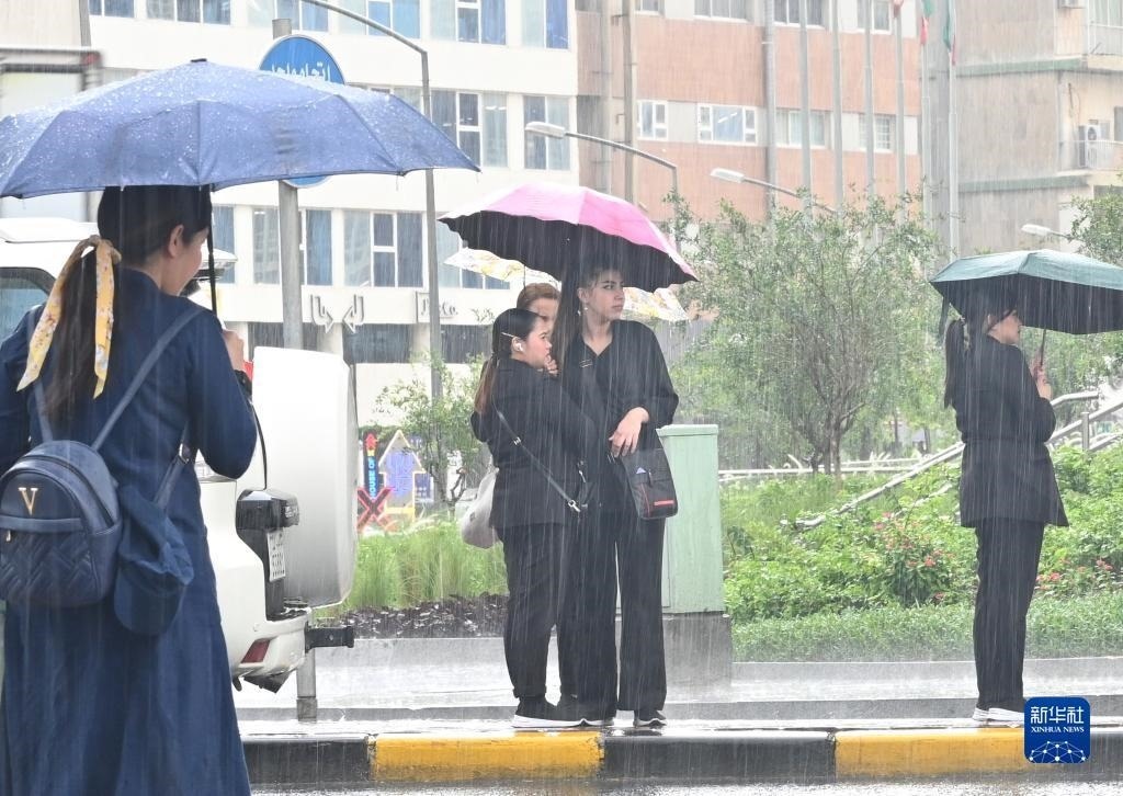 5月18日,人們在科威特首都科威特城冒雨出行。新華社發(fā)(阿薩德攝)