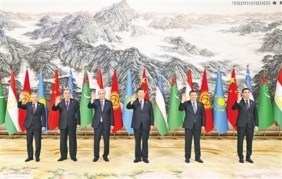 中亞五國(guó)元首相繼抵達(dá)。習(xí)近平同五國(guó)元首親切握手并集體合影。