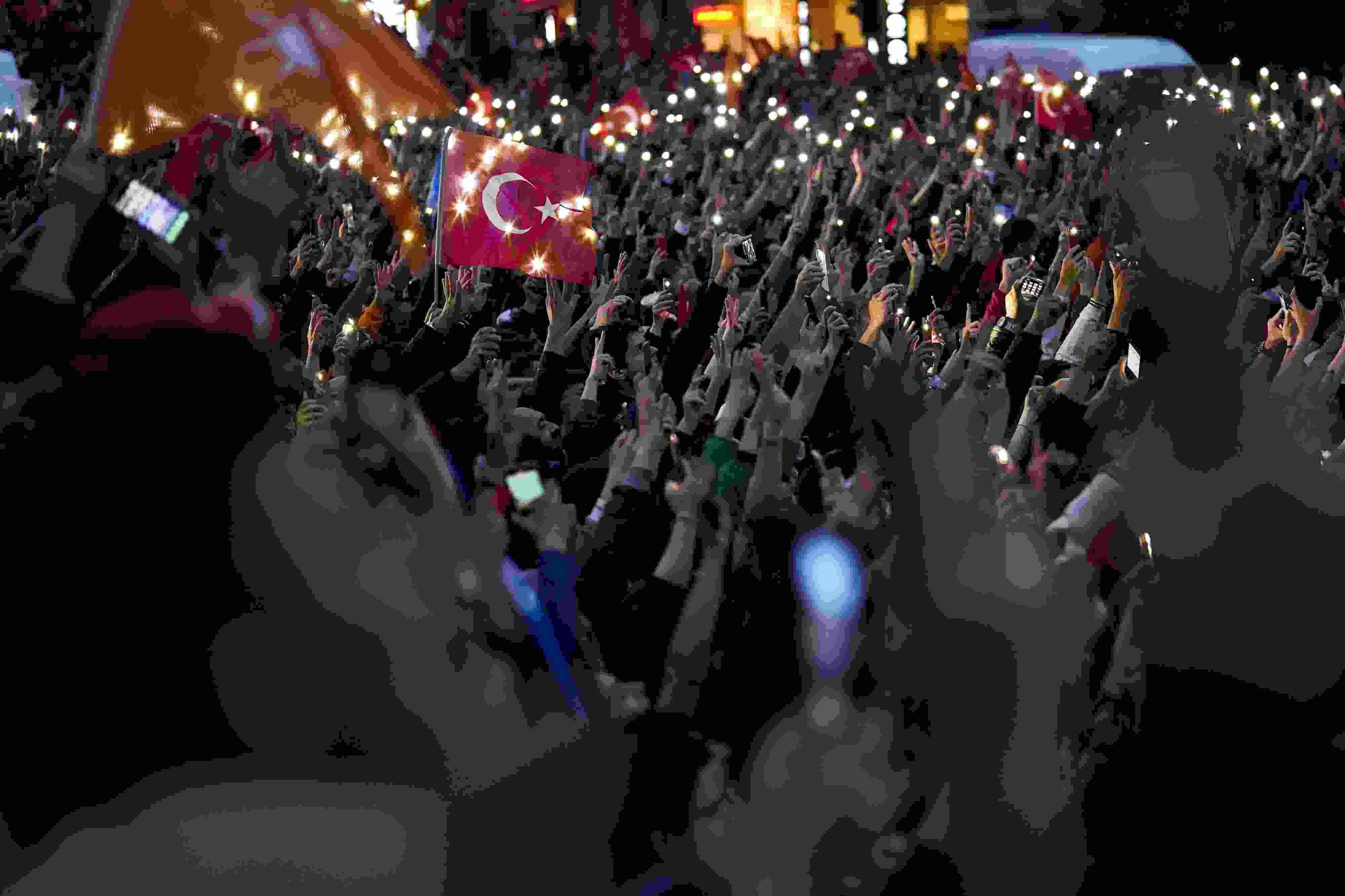 當(dāng)?shù)貢r(shí)間2023年5月28日,土耳其伊斯坦布爾,埃爾多安的支持者慶祝其再次當(dāng)選土耳其總統(tǒng)。土耳其最高選舉委員會主席艾哈邁德·耶內(nèi)爾28日深夜在首都安卡拉宣布,根據(jù)初步計(jì)票結(jié)果,現(xiàn)任總統(tǒng)埃爾多安在28日舉行的總統(tǒng)選舉第二輪投票中戰(zhàn)勝對手,再次當(dāng)選總統(tǒng)。 視覺中國