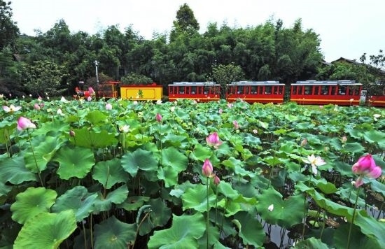 2019年7月21日,游客在浙江省安吉縣魯家村乘坐小火車游覽。新華社記者譚進攝