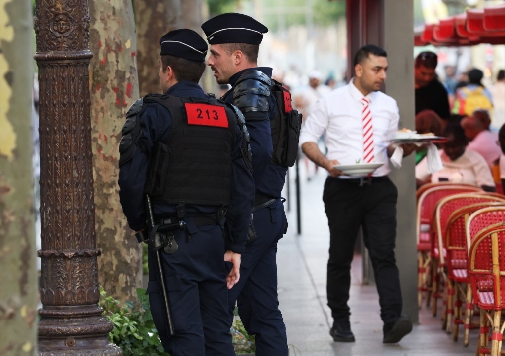 7月2日晚間,警察在法國(guó)巴黎香榭麗舍大道上巡邏。新華社記者高靜攝