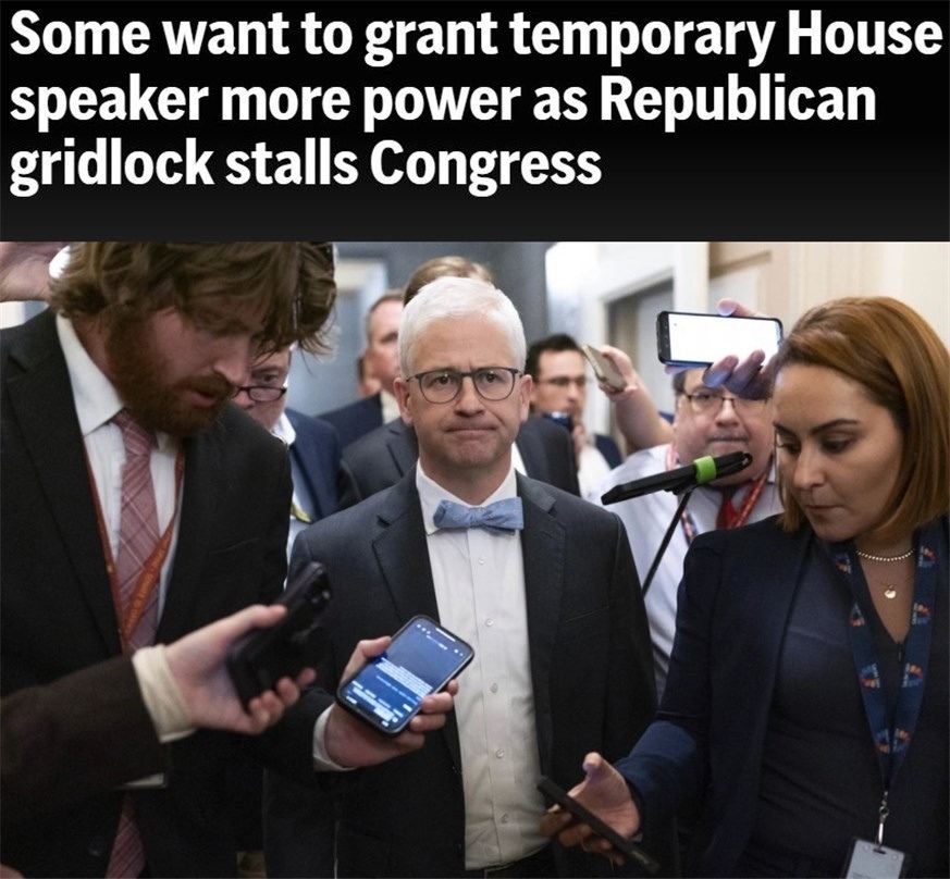 在此之前,為確保眾議院“正常履職”,有人提出當務之急是擴大麥克亨利的職權。不過,一些共和黨議員對此并不感興趣,認為在預算和其他重大政策方面,為臨時議長擴權并不是有效的做法。