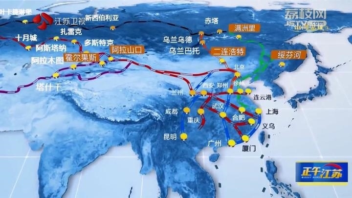 1992年,江蘇連云港開通最早發(fā)往中亞的班列;2013年,蘇州、鄭州、重慶、成都首批開通中亞班列;2016年,統(tǒng)一品牌:中歐班列。截至2023年9月底,中歐班列累計(jì)開行超7.8萬列,聯(lián)通中國境內(nèi)112個城市,通達(dá)歐洲25個國家的217個城市。