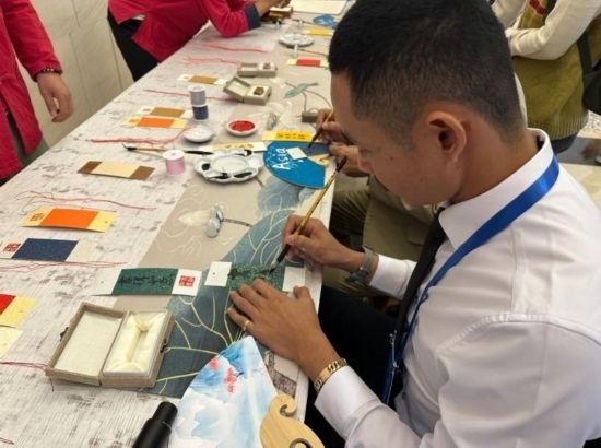 新華網(wǎng)北京10月23日電(記者王艷剛)10月20日至21日,首屆國際傳播“絲路獎(jiǎng)”獲獎(jiǎng)嘉賓在北京近距離體驗(yàn)中國傳統(tǒng)工藝景泰藍(lán)和中國書法。