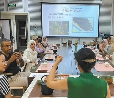 2023年7月,沙特中文學(xué)習(xí)者那丹(左三)在北京語(yǔ)言大學(xué)體驗(yàn)中國(guó)茶文化。以上圖片均為受訪者提供