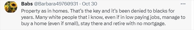還有網(wǎng)友表示,美國政府在加劇美國財富不平等方面“功不可沒”。在美國政策高壓之下,非裔甚至不配擁有住房。