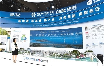 博鰲亞洲論壇2023年年會上,中國能建參展人員介紹“新能源 新基建 新產(chǎn)業(yè):綠色動能 向新而行”展臺。新華社記者 楊冠宇攝