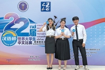 語言是了解一個(gè)國家最好的鑰匙。當(dāng)前,越來越多的外國人通過學(xué)習(xí)中文和參加“漢語橋”交流項(xiàng)目,了解到豐富多彩、立體全面的中國。圖為今年7月,部分參加第二十二屆“漢語橋”世界大學(xué)生中文比賽泰國賽區(qū)決賽的比賽選手在現(xiàn)場合影留念。