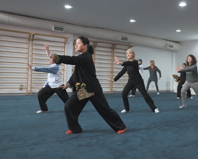 中國武術(shù)廣為世界所知,越來越多的外國友人愛上“中國功夫”,太極拳也被列入聯(lián)合國非物質(zhì)文化遺產(chǎn)名錄。圖為今年9月,在位于阿根廷首都布宜諾斯艾利斯的阿根廷公民武術(shù)俱樂部內(nèi),中國教練正在帶領(lǐng)學(xué)員練習(xí)太極拳。