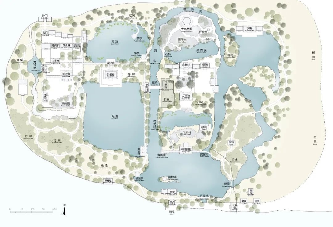 止園平面復(fù)原圖。黃曉、王笑竹、戈祎迎繪