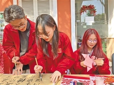 12月8日,在河內(nèi)大學(xué)孔子學(xué)院舉行的文化體驗(yàn)活動中,越南大學(xué)生體驗(yàn)中國書法和剪紙。本報(bào)記者 張遠(yuǎn)南攝