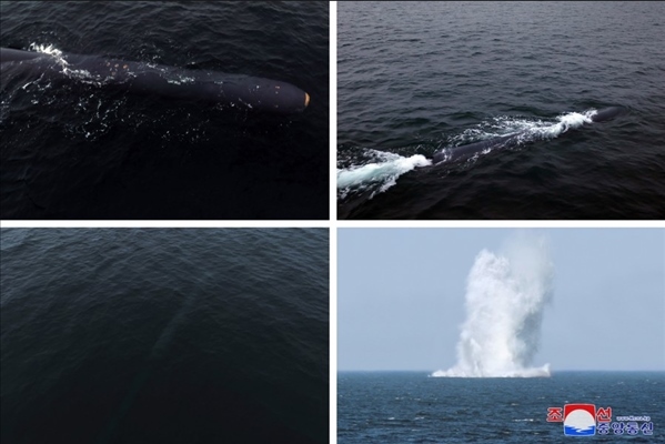 去年3月,朝鮮進行了一系列軍事訓練活動,包括新型水下攻擊武器系統(tǒng)試驗,其中,“海嘯”的核無人潛水攻擊艇首次亮相。試驗在朝鮮咸鏡南道利原郡海岸進行,在80米至150米深度潛航了約59小時,最后到達假想敵人港口的洪原灣水域目標點爆炸。一個月后朝鮮公開了“海嘯-2”型核無人潛水攻擊艇,朝方稱,該艇進行了71小時、1000千米的潛航試驗,驗證了潛水式戰(zhàn)略武器系統(tǒng)的可靠性和致命打擊能力。