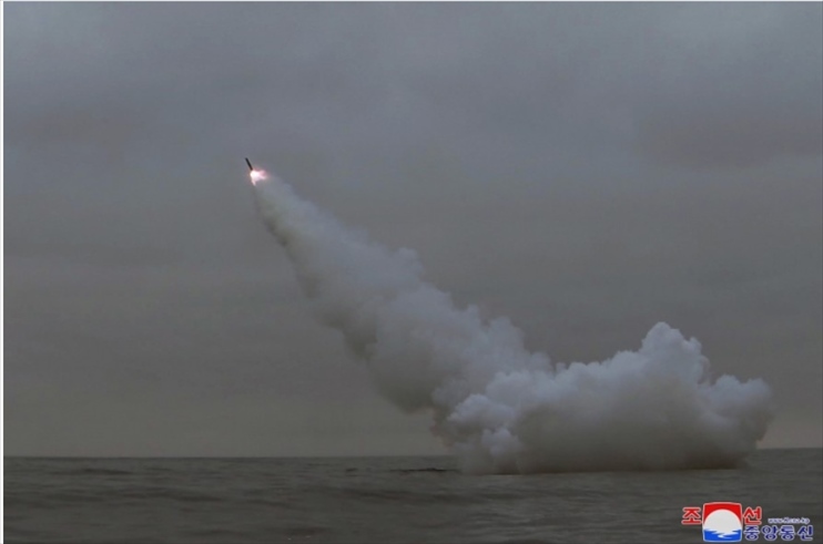 朝鮮公開潛射戰(zhàn)略巡航導彈試射照片。