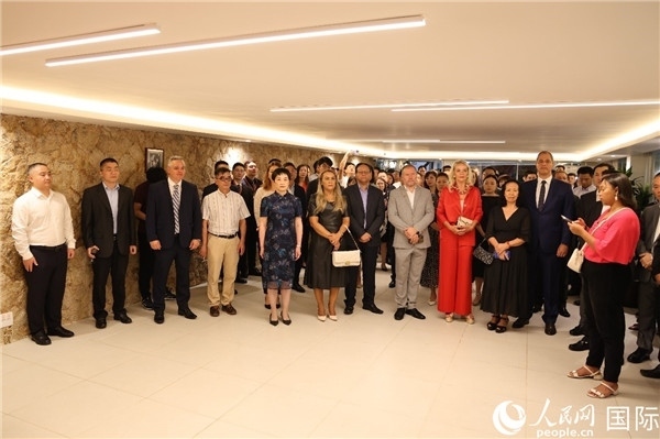 贊比亞小伙子在跟著中國老師學(xué)跳民族舞蹈。人民網(wǎng)記者 黃培昭攝