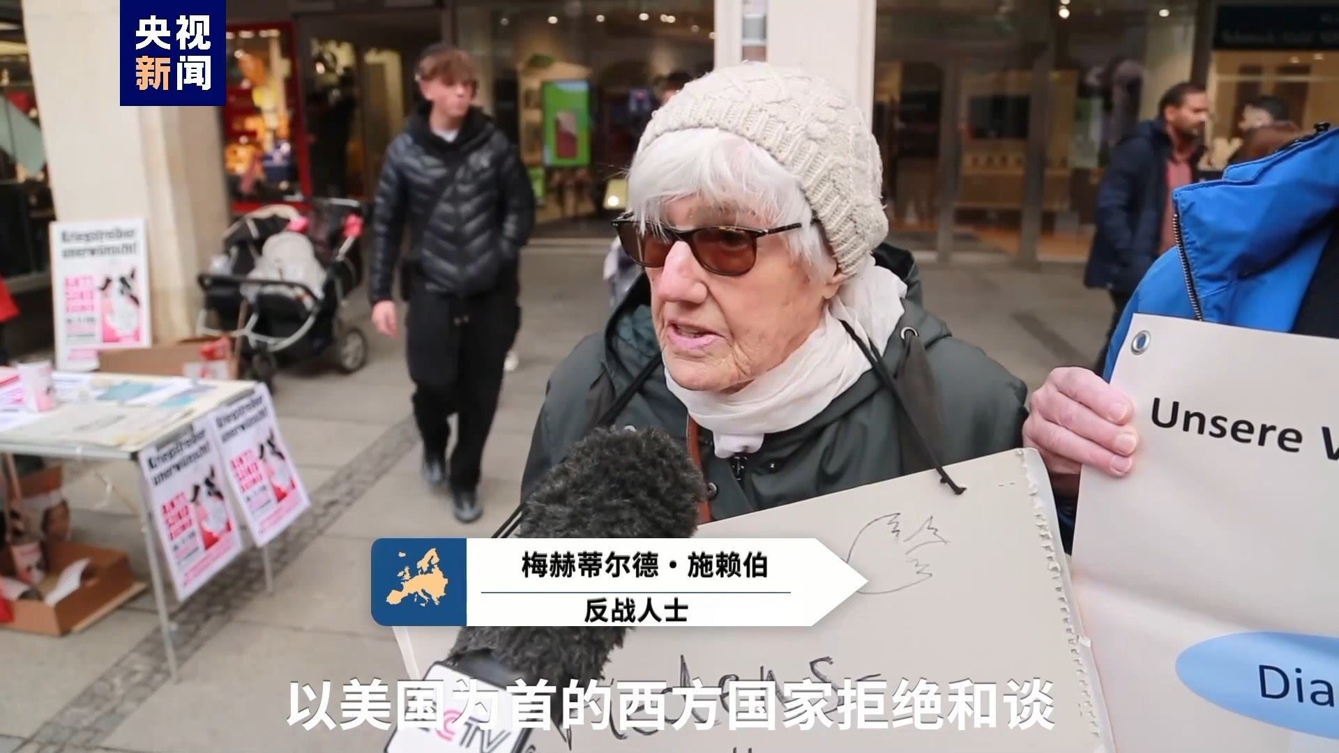 反戰(zhàn)人士 梅赫蒂爾德·施賴伯:以美國為首的西方國家拒絕和談。德國國防部長說,我們必須做好戰(zhàn)爭準(zhǔn)備,運(yùn)送武器并且提高武器生產(chǎn)能力。這非??膳?。