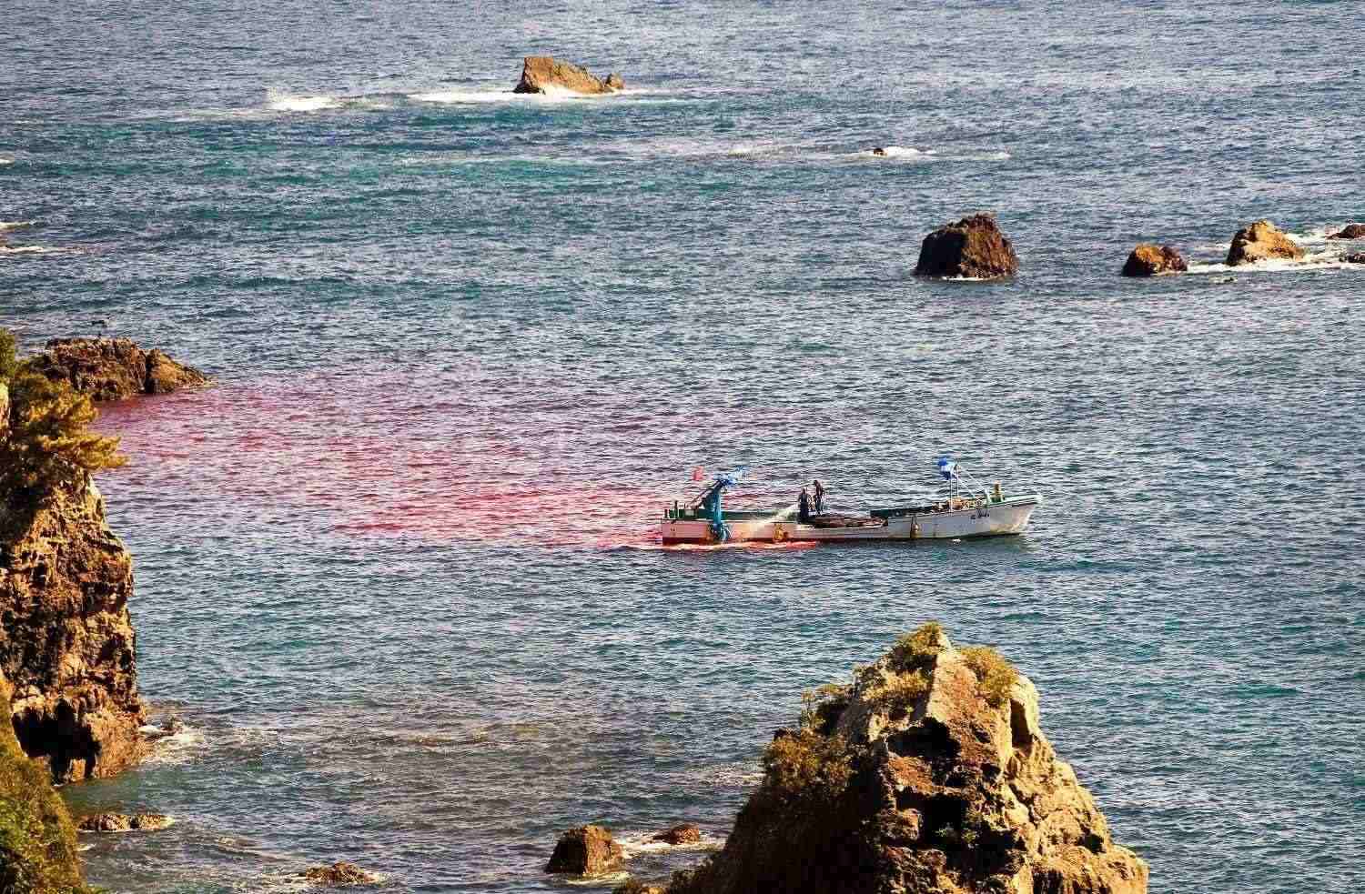 2009年,大量野捕海豚在太地町被屠殺,鮮血染紅海面。圖片來(lái)源:Robert Gilhooly