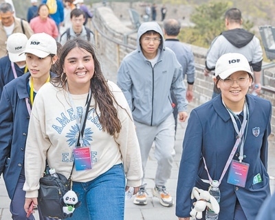 馬斯卡廷中學(xué)學(xué)生(前左)登上北京八達嶺長城。