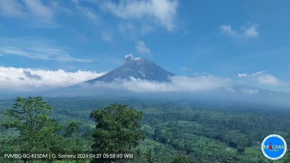 當?shù)貢r間4月27日9時59分,塞梅魯火山再次發(fā)生噴發(fā),火山灰柱達800米,噴發(fā)持續(xù)時間為124秒。(總臺記者 巫曉瑩)