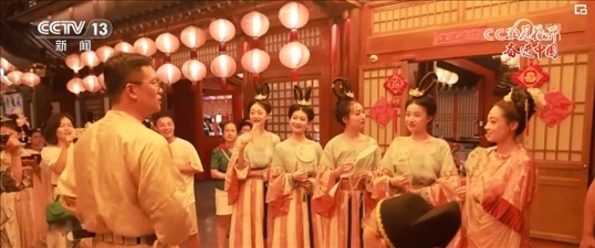 看起來對漢服造型頗有研究的胡芯銀今年只有24歲。胡芯銀介紹,也就是在這幾年,隨著大家對傳統(tǒng)文化的喜愛,西安的漢服館如雨后春筍般涌現(xiàn)。感受到“漢服熱”的胡芯銀在2022年初,辭去了原先婚禮跟妝的工作,應(yīng)聘到了這家位于長安十二時(shí)辰主題街區(qū)附近的漢服館,擔(dān)任漢服造型師。