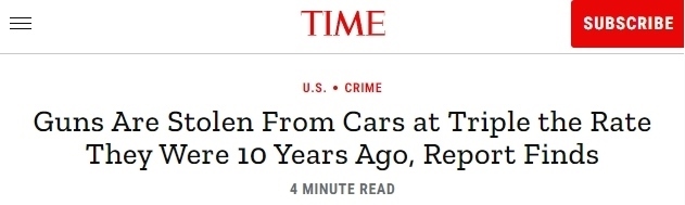 報(bào)告還分析了FBI全美事件報(bào)告系統(tǒng)的犯罪數(shù)據(jù),發(fā)現(xiàn)從汽車(chē)中盜竊槍支的行為與汽車(chē)盜竊的總體趨勢(shì)背道而馳,在過(guò)去十年中,從汽車(chē)中盜竊其他物品的比率下降了11%,而槍支盜竊率卻增長(zhǎng)了200%。