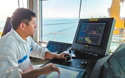 將智能疏浚與高新技術(shù)裝備深度融合是“新海鯊”輪的一大亮點(diǎn)?!靶潞u彙陛喤鋫淞酥袊?guó)自主研發(fā)的智能疏浚決策與控制系統(tǒng),采用機(jī)器學(xué)習(xí)和人工智能算法,實(shí)現(xiàn)絞吸式挖泥船一鍵施工作業(yè)和智能尋優(yōu)控制。駕駛艙里,工作人員正緊盯觸摸式屏幕,手動(dòng)調(diào)整絞刀挖深和功率等參數(shù)。這些數(shù)據(jù)將被智能系統(tǒng)采集分析,為進(jìn)一步提升施工效率提供輔助。阿方駐船工程師艾曼表示,中方人員施工調(diào)整熟練靈活,阿中雙方溝通順暢、配合默契,“我對(duì)‘新海鯊’輪的作業(yè)能力很有信心?!?/p>