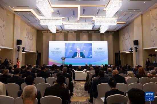 9月23日,在俄羅斯首都莫斯科,俄羅斯國(guó)家杜馬第一副主席、俄中友好協(xié)會(huì)主席伊萬(wàn)·梅利尼科夫在論壇上發(fā)表視頻講話。新華社記者 白雪騏 攝