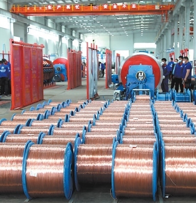 固達電線電纜(集團)有限公司二期新能源線纜車間內整齊擺放著銅導體。以上圖片均為本報記者陳尚文攝