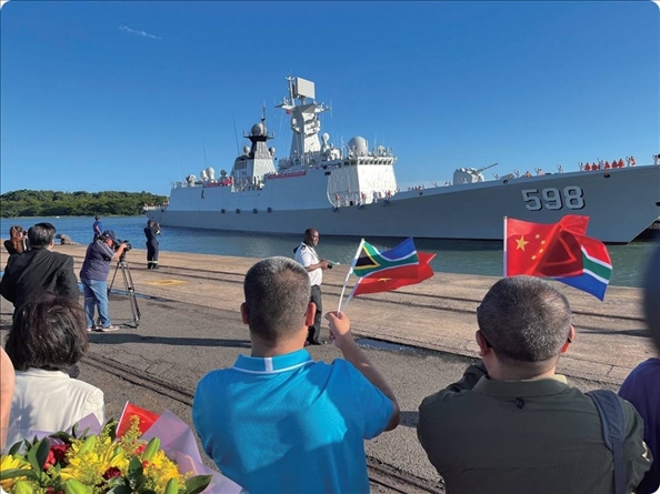 聯(lián)合演習(xí)開始前一天,中國海軍日照艦抵達南非理查茲灣港口,受到歡迎