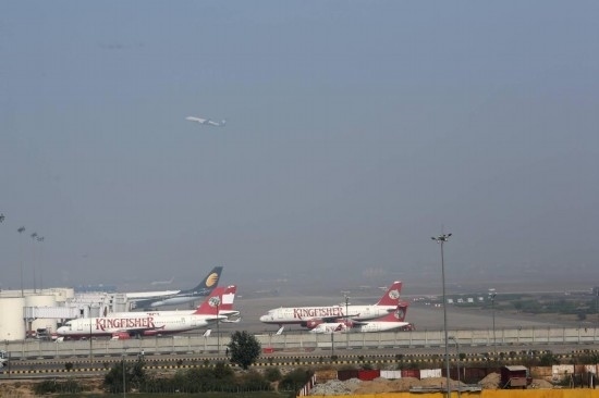 2013年2月1日,在印度首都新德里,飛機(jī)停靠在英迪拉·甘地國際機(jī)場。新華社記者李毅剛攝