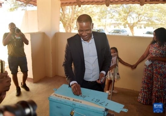 10月30日,博茨瓦納民主改革聯(lián)盟總統(tǒng)候選人杜馬·博科在東南部區(qū)特洛昆的一處投票站投票。新華社發(fā)(策基索·特巴洛攝)