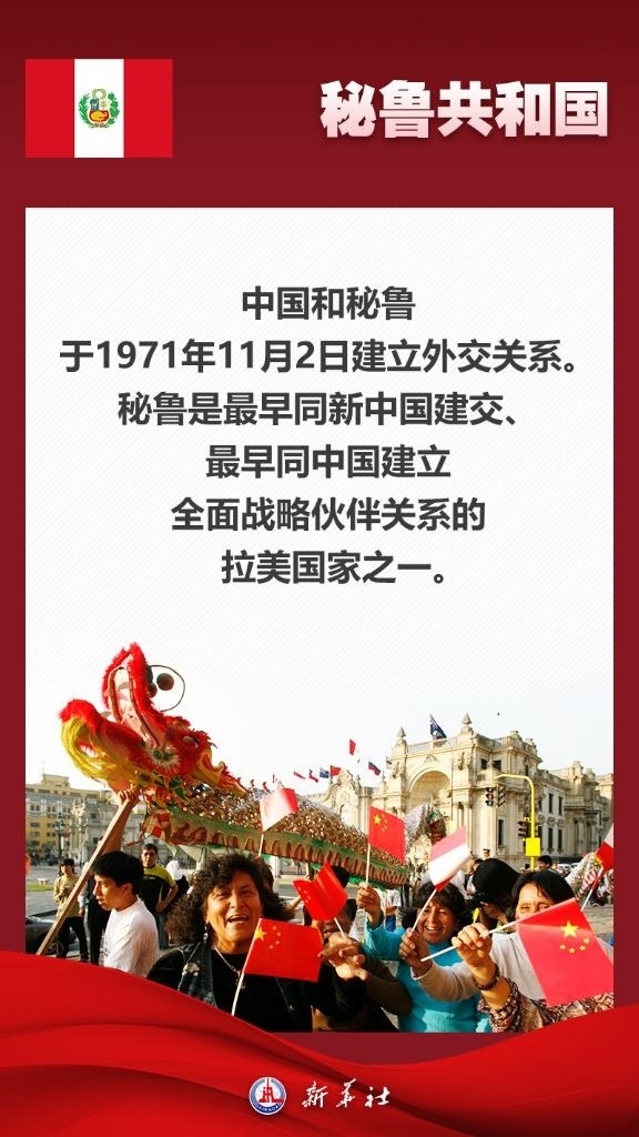 應(yīng)秘魯共和國總統(tǒng)博魯阿爾特邀請,國家主席習(xí)近平將于11月13日至17日赴利馬出席亞太經(jīng)合組織第三十一次領(lǐng)導(dǎo)人非正式會(huì)議并對秘魯進(jìn)行國事訪問。秘魯位于南美洲西部,是印加文明發(fā)祥地,也是最早同新中國建交的拉美國家之一。關(guān)于秘魯,七張海報(bào)帶你了解更多——