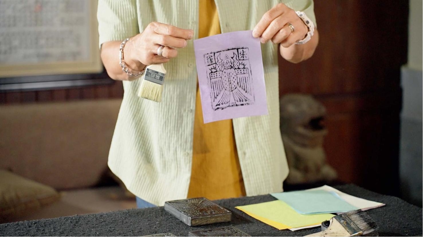 林登帶記者參觀了喜林苑的“小小圖書館”。這間約10平方米的屋子是林登的得意之作。走進(jìn)屋子,中間是張大木頭案幾,案幾上放著制作大理“非遺”甲馬的木制刻板。案幾后,書柜占滿了整整一面墻,書架上擺放著各種文字的書,都是講中國(guó)故事的。當(dāng)初開設(shè)喜林苑時(shí),林登特地騰出了這個(gè)房間,免費(fèi)對(duì)喜洲村民和游客開放?!拔覀兘?jīng)常在這里舉辦各種文化交流活動(dòng),邀請(qǐng)大家來(lái)玩。”